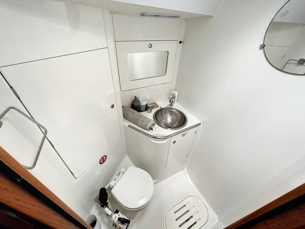 Segelyacht Sun Odyssey 52.2 Slow, Baujahr 2004, liegt im Marina d'Empuriabrava, Katalunien, Spanien vor Anker. Es verfügt über 4 Kabinen und bietet Platz für 8 Personen mit 4 Toiletten.