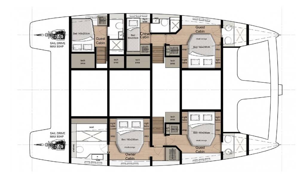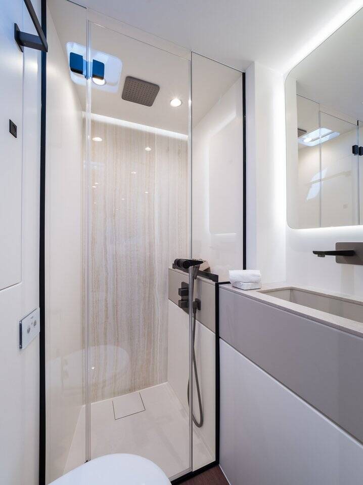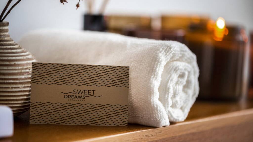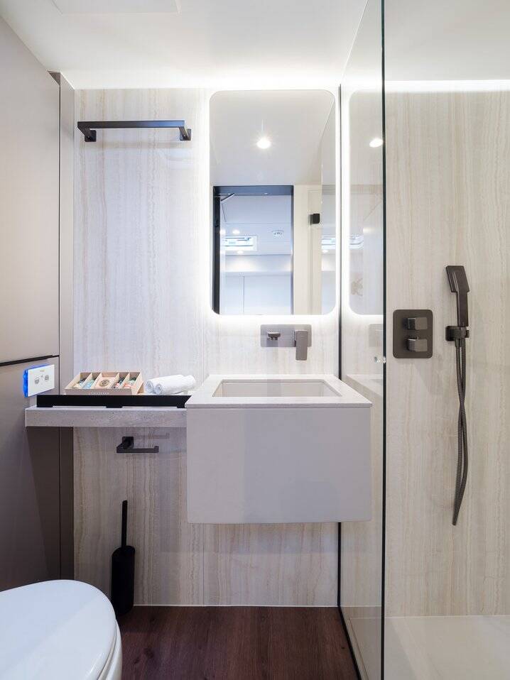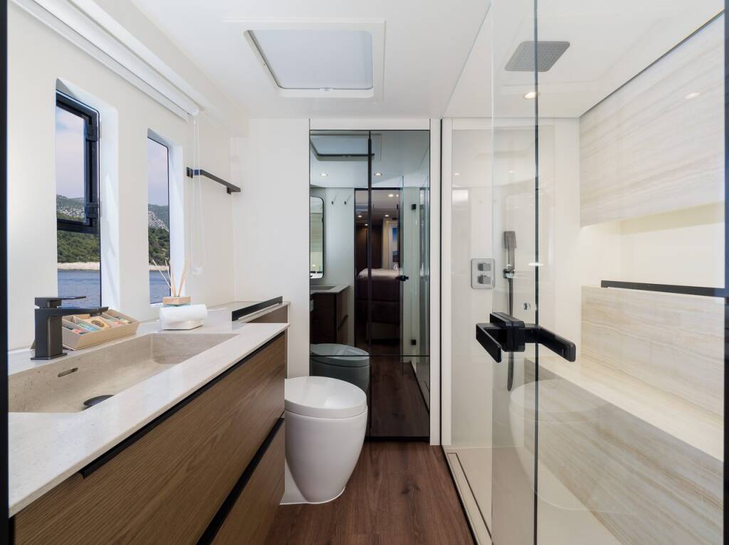 Katamaran Sunreef 50 Sweet Dreams, Baujahr 2023, liegt im Marina Kastela, Split & Umgebung, Kroatien vor Anker. Es verfügt über 4 + 1 Kabinen und bietet Platz für 8 + 1 Personen mit 4 + 1 Toiletten.