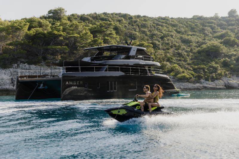 Amber One ist ein beeindruckender 70-Fuß Sunreef Power Motor-Katamaran, der darauf ausgelegt ist, zu begeistern. Sie bietet vier luxuriöse Kabinen mit eigenem Bad für bis zu 8 Gäste, unterstützt von einer 4-köpfigen Crew, die mühelosen Komfort und erstklassigen Service gewährleistet. Mit einem nahtlosen Übergang zwischen Innen- und Außenbereichen, einem geräumigen Flybridge mit Bar und Sonnenliegen und hervorragender Leistung ist Amber One die perfekte Wahl, um die Inseln Kroatiens in unvergleichlichem Luxus zu erkunden.