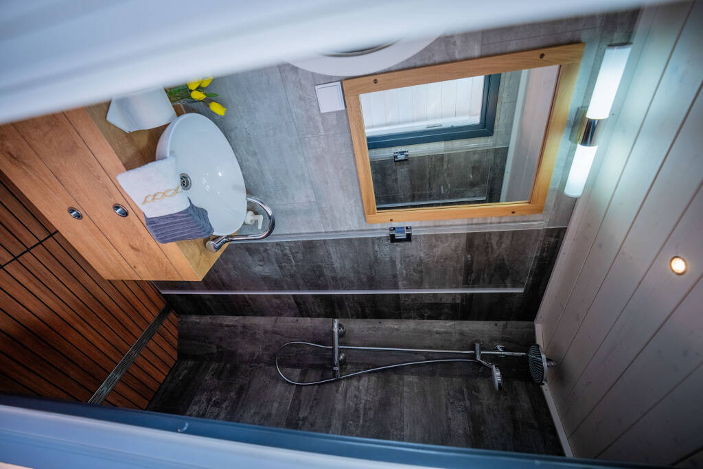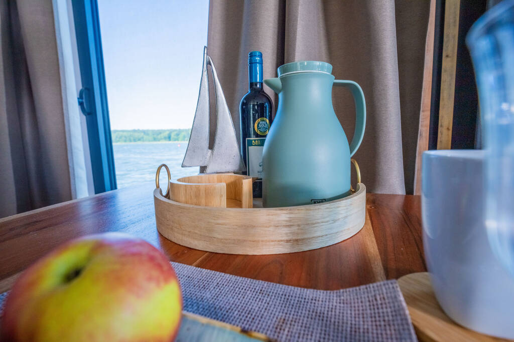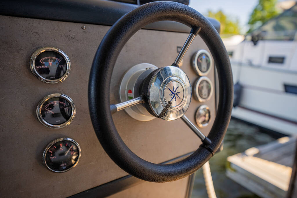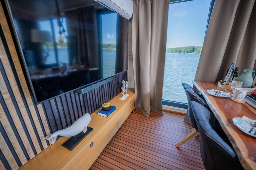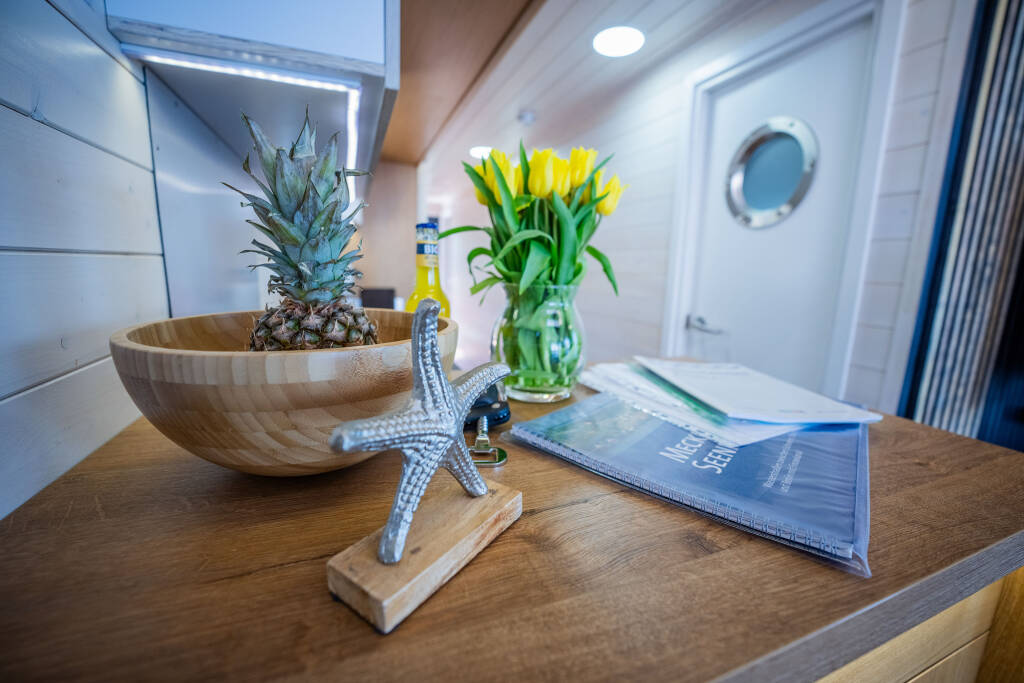 Motoryacht Woma D13 Ariella, Baujahr 2022, liegt im Röblinsee Marina, Brandenburg, Deutschland vor Anker. Es verfügt über 2 Kabinen und bietet Platz für 7 Personen mit 1 Toiletten.