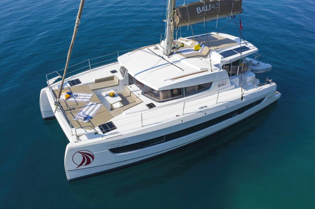Catamaran Bali 4.2 Clair de Lune, built in 2021 is anchored in the Marina Kastela, Split region, Croatia. It has 4 + 1 cabins, can accommodate 8 + 2 + 1 people and has 4 + 1 toilets.
