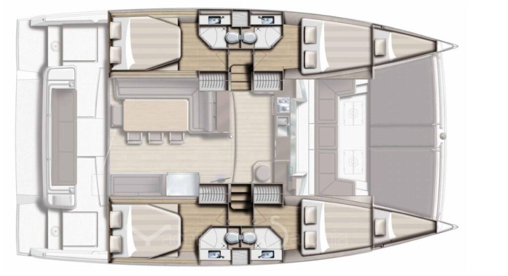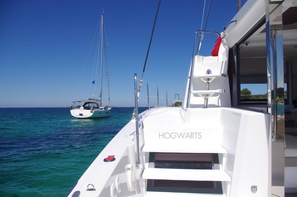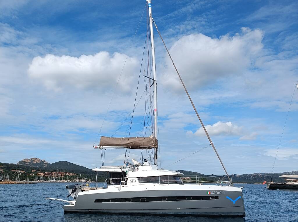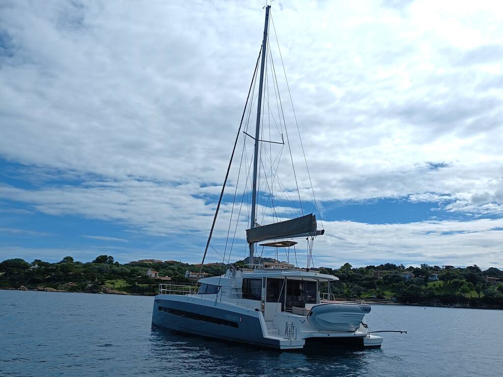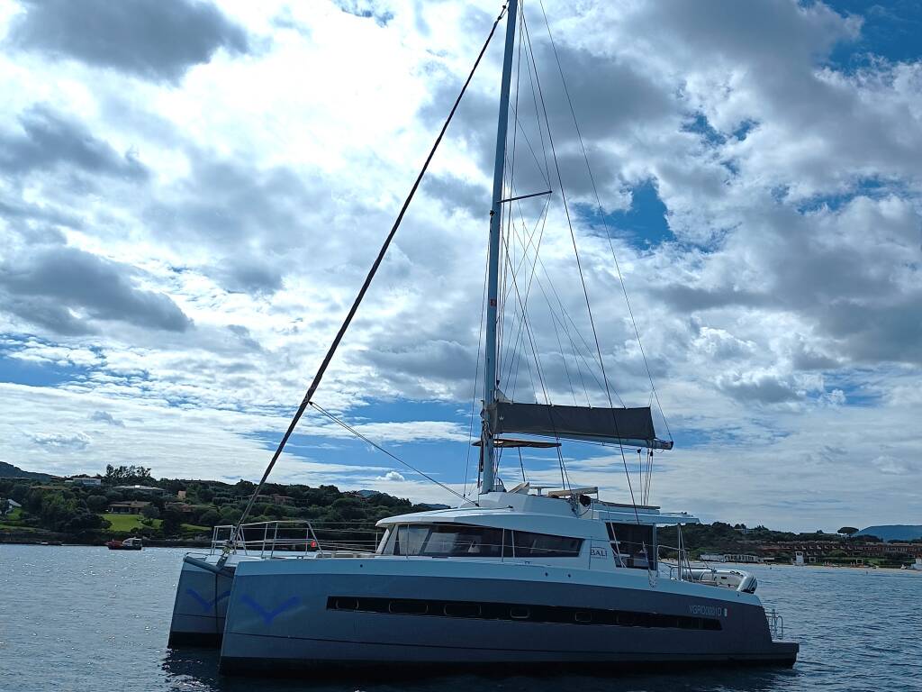 Catamaran Bali 4.3 Hogwarts, built in 2020 is anchored in the Sardinia, Punta Nuraghe, Sardinia, Italy. It has 4 + 2 cabins, can accommodate 8 + 2 people and has 4 toilets.