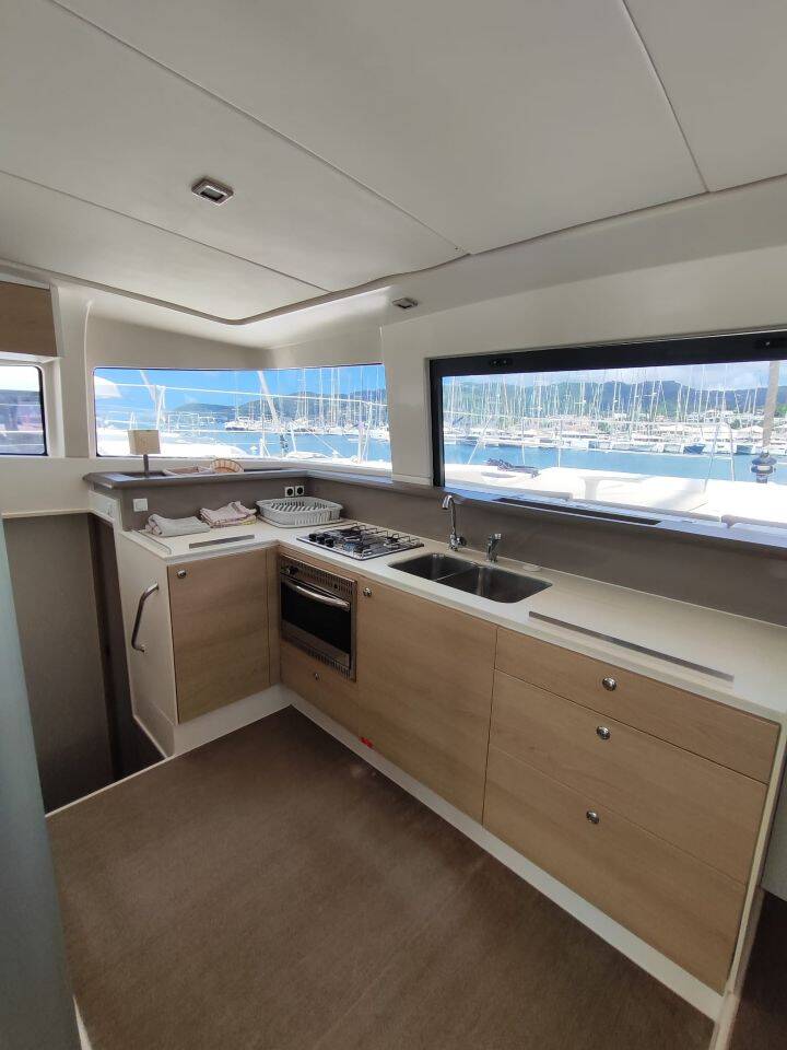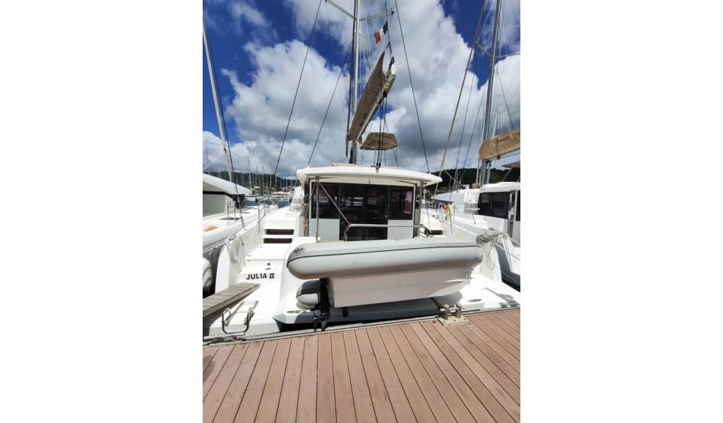 Catamaran Bali 4.3 JULIA II, built in 2019 is anchored in the Martinique, Le Marin, Martinique, Caribbean. It has 4 + 2 cabins, can accommodate 8 + 2 + 2 people and has 4 toilets.