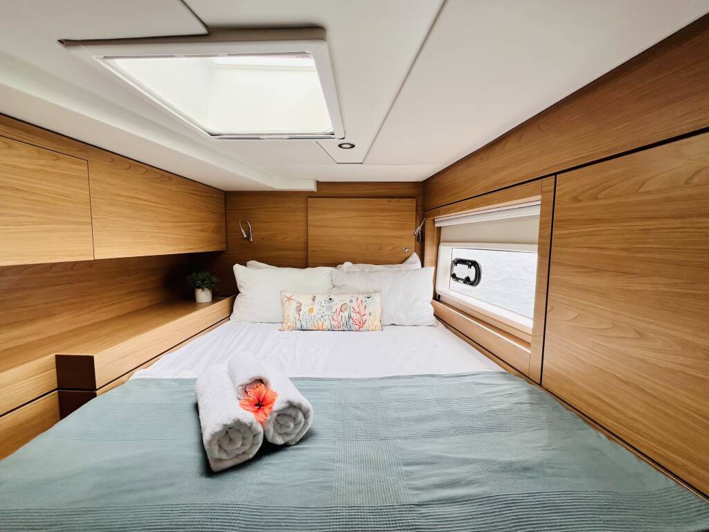 Catamaran Bali 4.6 First Tracks, built in 2023 is anchored in the Belize, Old Belize Marina , Belize, Belize. It has 4 cabins, can accommodate 8 people and has 4 toilets.