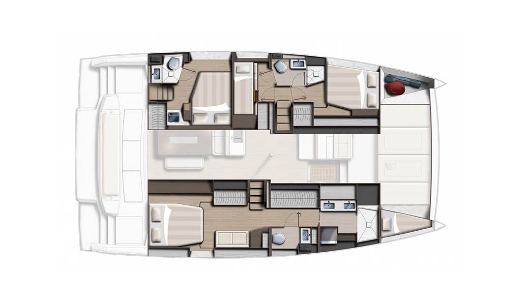+provisioning ; Crew on board must have their own toilets/ showers. If either a skipper or a hostess/cook is on board, 1 double cabin will be required for him/her. If both a skipper and a hostess/cook are on board, 1 double cabin and 1 forepeak cabin will be required for them. Exceptions exists for specific layouts, Sales Agents will provide more details about the different boat models.