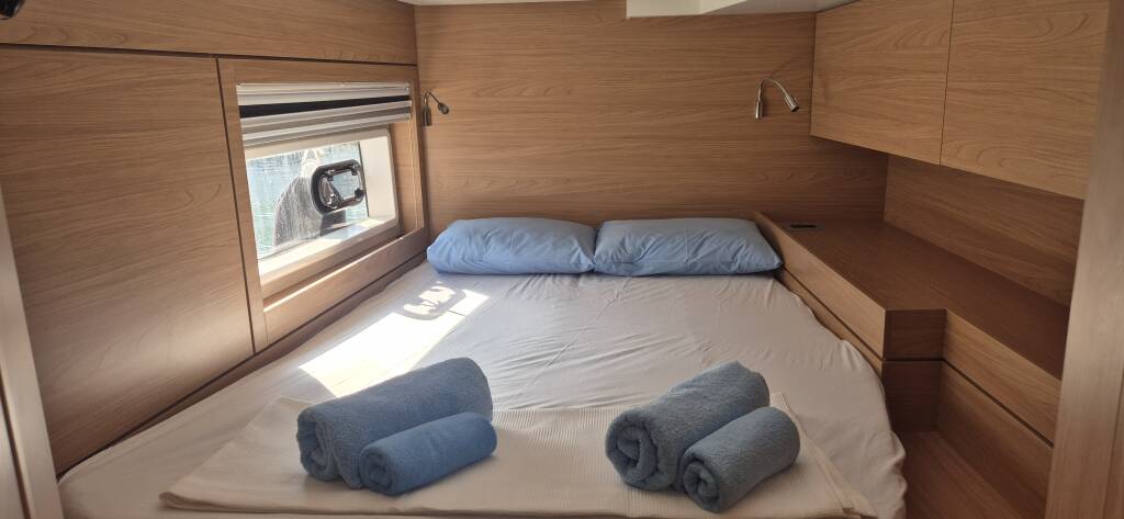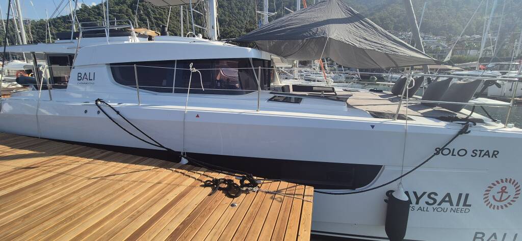 Catamaran Bali 4.6 Solo Star, built in 2024 is anchored in the Fethiye, Lykia Yacht Club, Aegean, Turkey. It has 4 + 1 cabins, can accommodate 8 + 1 people and has 4 + 1 toilets.