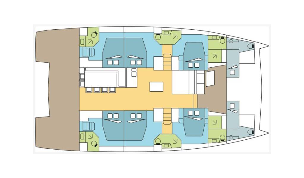 Catamaran Bali 5.4 IDRIL, built in 2021 is anchored in the Polynesia, Raiatea, French Polynesia, French Polynesia. It has 6 + 2 cabins, can accommodate 12 + 2 people and has 6 + 2 toilets.