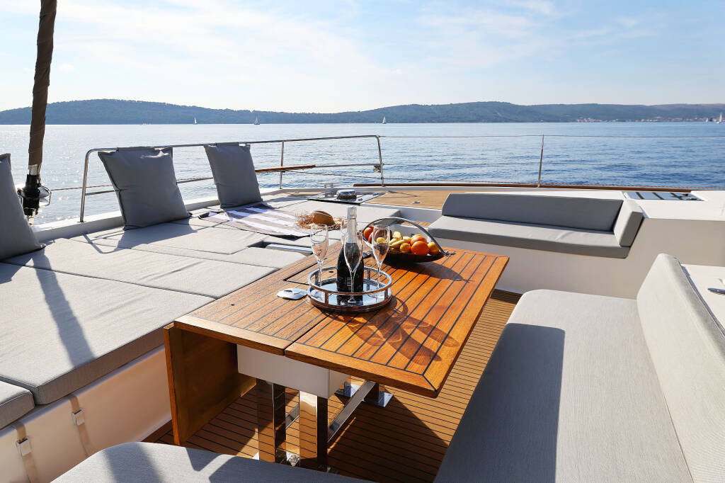 Obligatory services are: charter fee, skipper, hostess and advance provisioning allowance for the crew to prepare the boat according to your wishes. RIB Highfield 360 with console that has an engine of 30 HP is also included in the price as well as two stand up paddles and snorkeling sets for underwater experience. You can book more water toys or services depending on your preferences – check the pricing below.