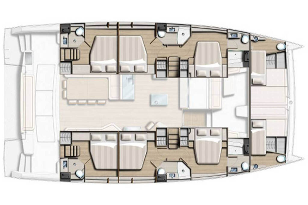 Catamaran Bali 5.4 Ne Plus Ultra, built in 2023 is anchored in the BVI, Tortola, Nanny Cay Marina, British Virgin Islands, British Virgin Islands. It has 6 cabins, can accommodate 12 people and has 6 + 2 toilets.