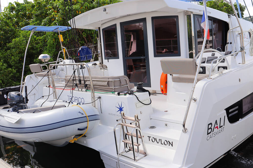 Catamaran Bali Catsmart Tropico, built in 2024 is anchored in the BVI, Tortola, Nanny Cay Marina, British Virgin Islands, British Virgin Islands. It has 4 cabins, can accommodate 8 people and has 2 toilets.
