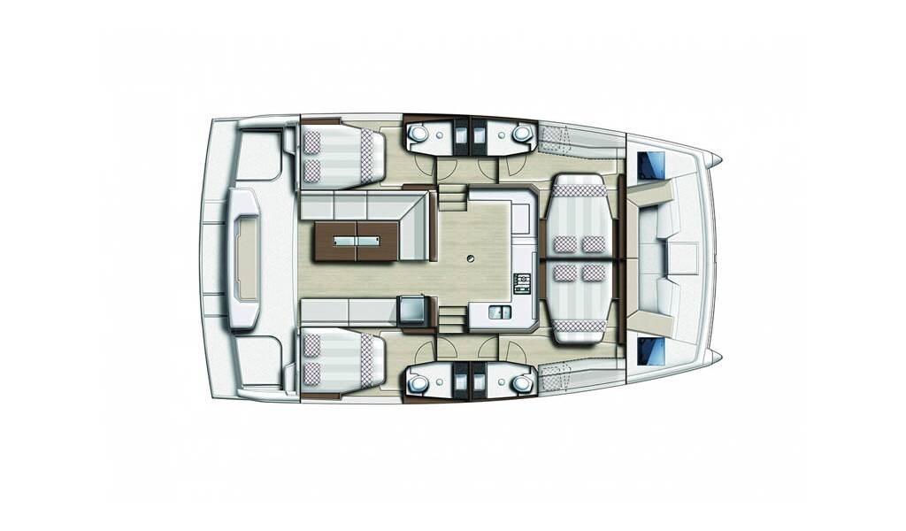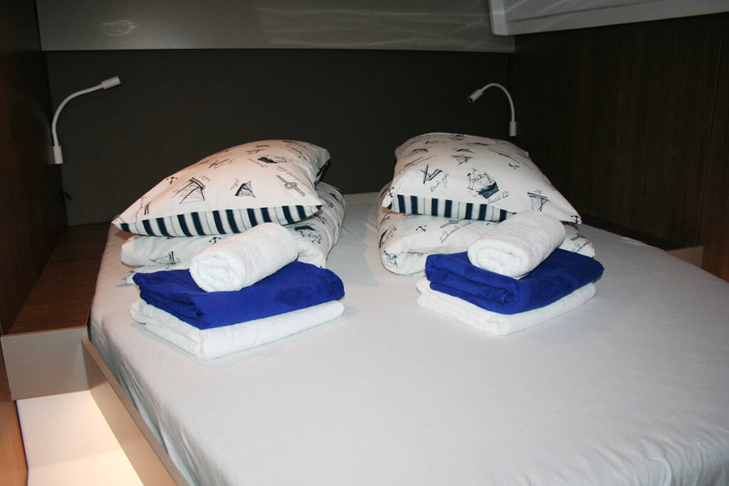 +provisioning ; Crew on board must have their own toilets/ showers. If either a skipper or a hostess/cook is on board, 1 double cabin will be required for him/her. If both a skipper and a hostess/cook are on board, 1 double cabin and 1 forepeak cabin will be required for them. Exceptions exists for specific layouts, Sales Agents will provide more details about the different boat models. // In Spain, law requires clients to pay skipper directly with a contract established between both parties