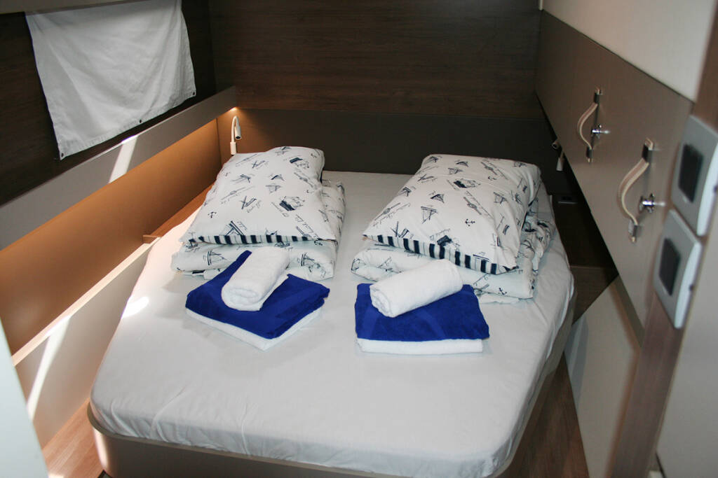 +provisioning ; Crew on board must have their own toilets/ showers. If either a skipper or a hostess/cook is on board, 1 double cabin will be required for him/her. If both a skipper and a hostess/cook are on board, 1 double cabin and 1 forepeak cabin will be required for them. Exceptions exists for specific layouts, Sales Agents will provide more details about the different boat models. Breakfast, light lunch, keeping the boat and toilet clean. // In Spain, law requires clients to pay hostess directly with a contract established between both parties - Payable at the base