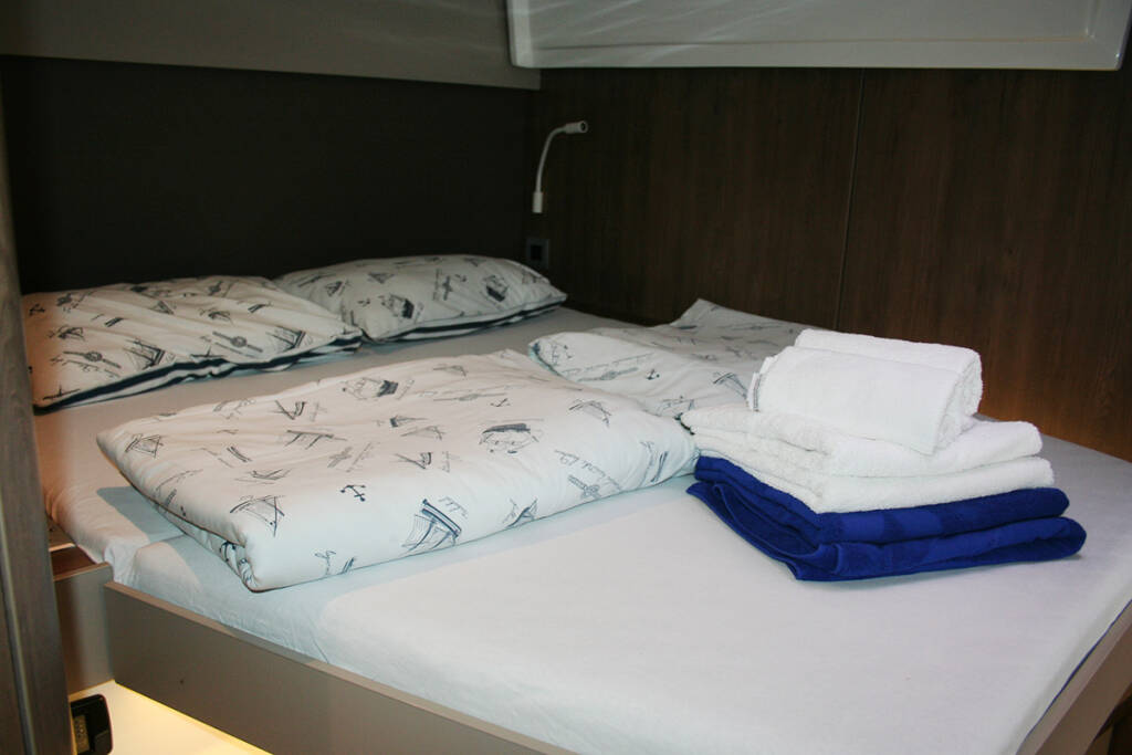 Catamaran Bali Catspace Ghost, built in 2022 is anchored in the Dubrovnik, Komolac, ACI Marina Dubrovnik, Dubrovnik region, Croatia. It has 4 cabins, can accommodate 8 + 2 people and has 4 toilets.
