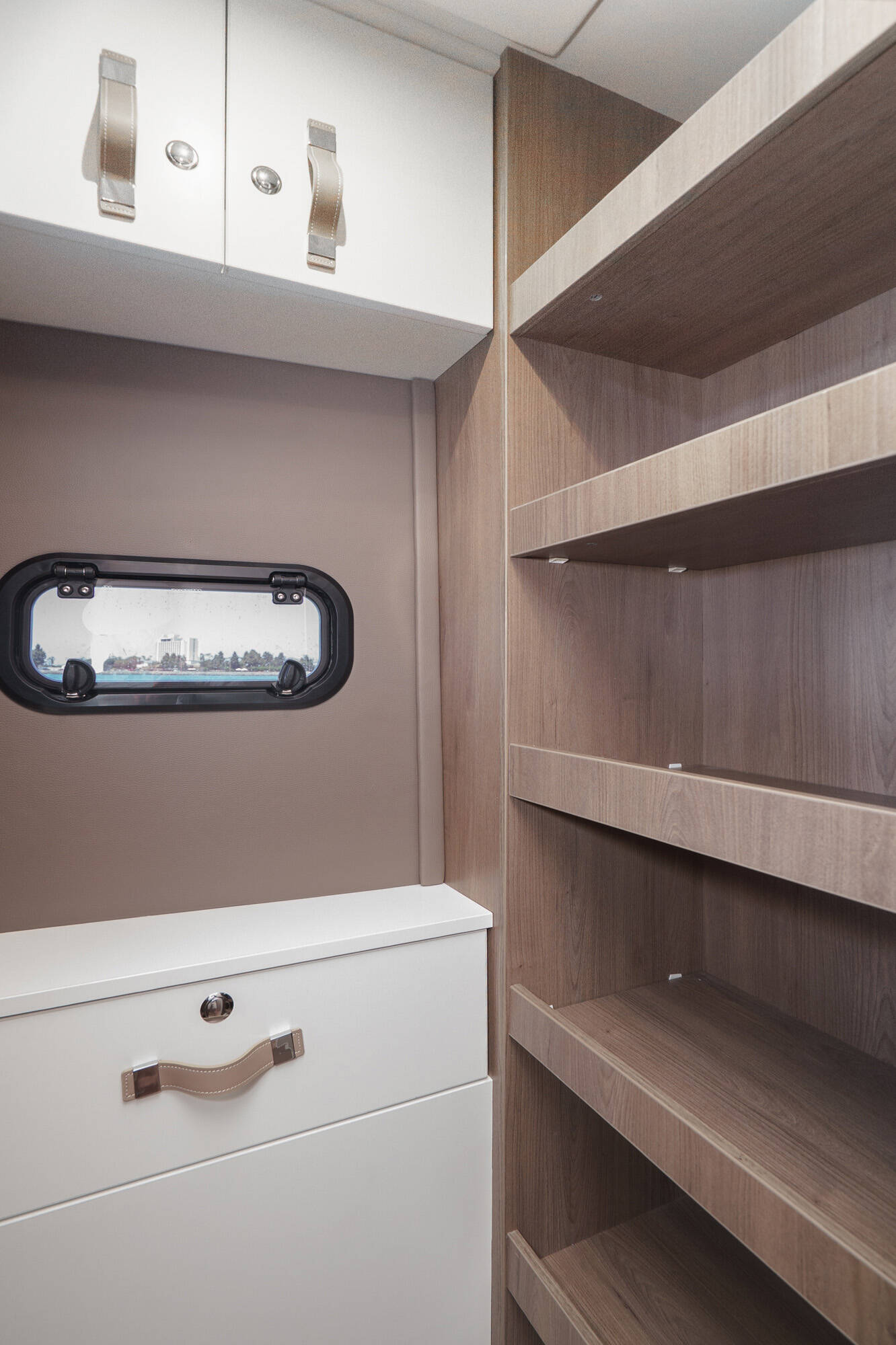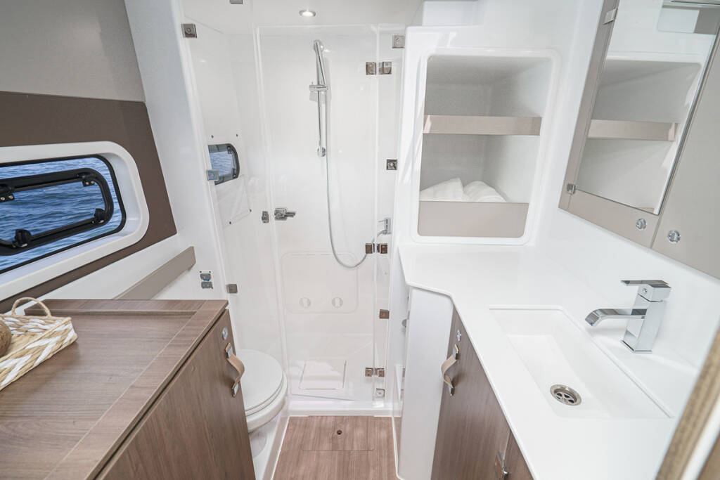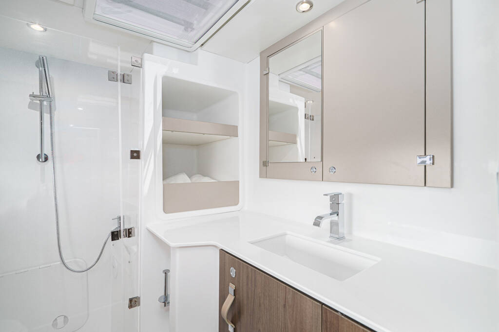 +provisioning ; Crew on board must have their own toilets/ showers. If either a skipper or a hostess/cook is on board, 1 double cabin will be required for him/her. If both a skipper and a hostess/cook are on board, 1 double cabin and 1 forepeak cabin will be required for them. Exceptions exists for specific layouts, Sales Agents will provide more details about the different boat models.
