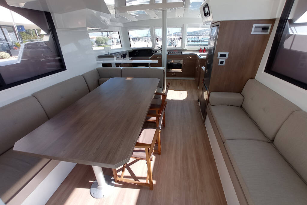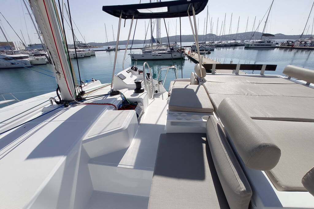 Catamaran Bali Catspace Sailin, built in 2023 is anchored in the Trogir, Yachtclub Seget (Marina Baotić), Split region, Croatia. It has 4 cabins, can accommodate 8 + 2 people and has 4 toilets.