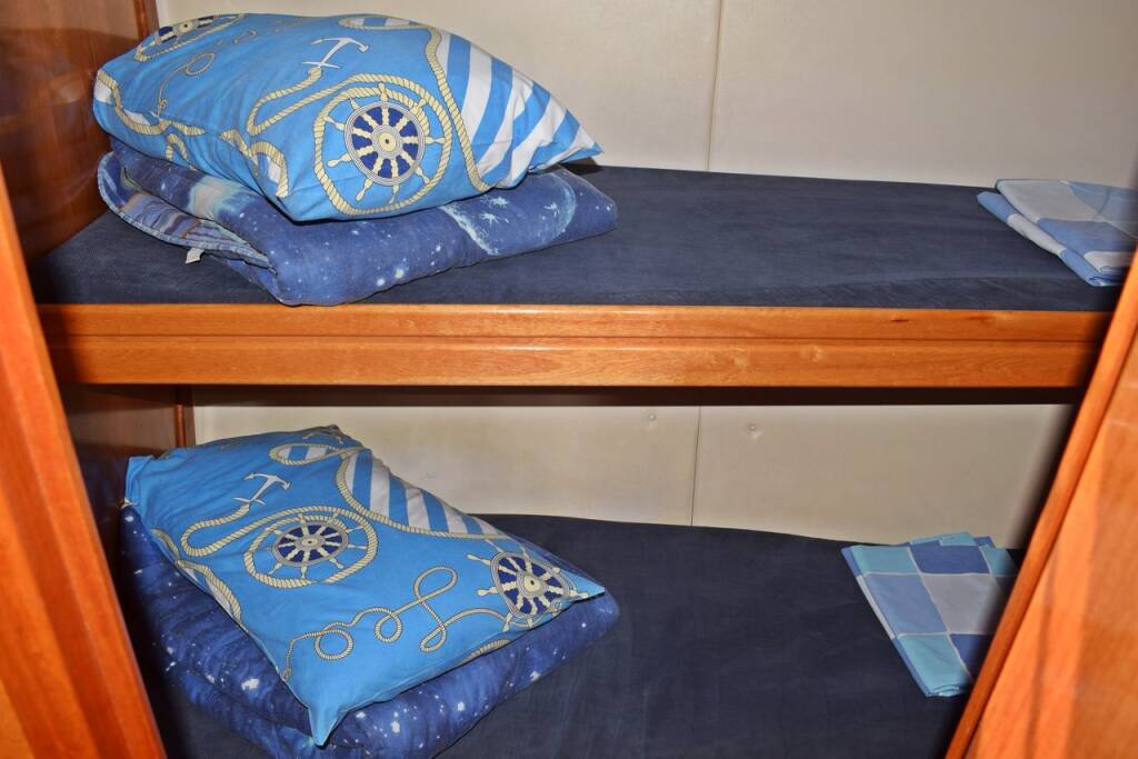 Autopilot, bimini top, GPS, gas, sprayhood, dinghy, bed linen, no bathing platformObligatory