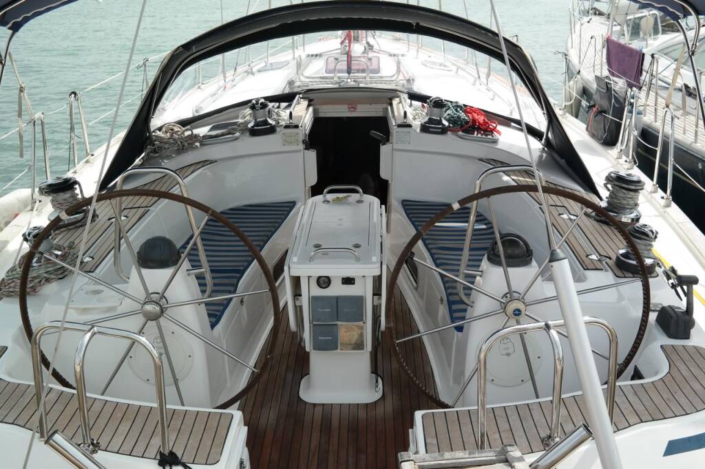 Sailing yacht Bavaria 49 Monelli, built in 2003 is anchored in the Corfu, Gouvia Marina, Ionian Islands, Greece. It has 5 cabins, can accommodate 10 + 1 people and has 3 toilets.