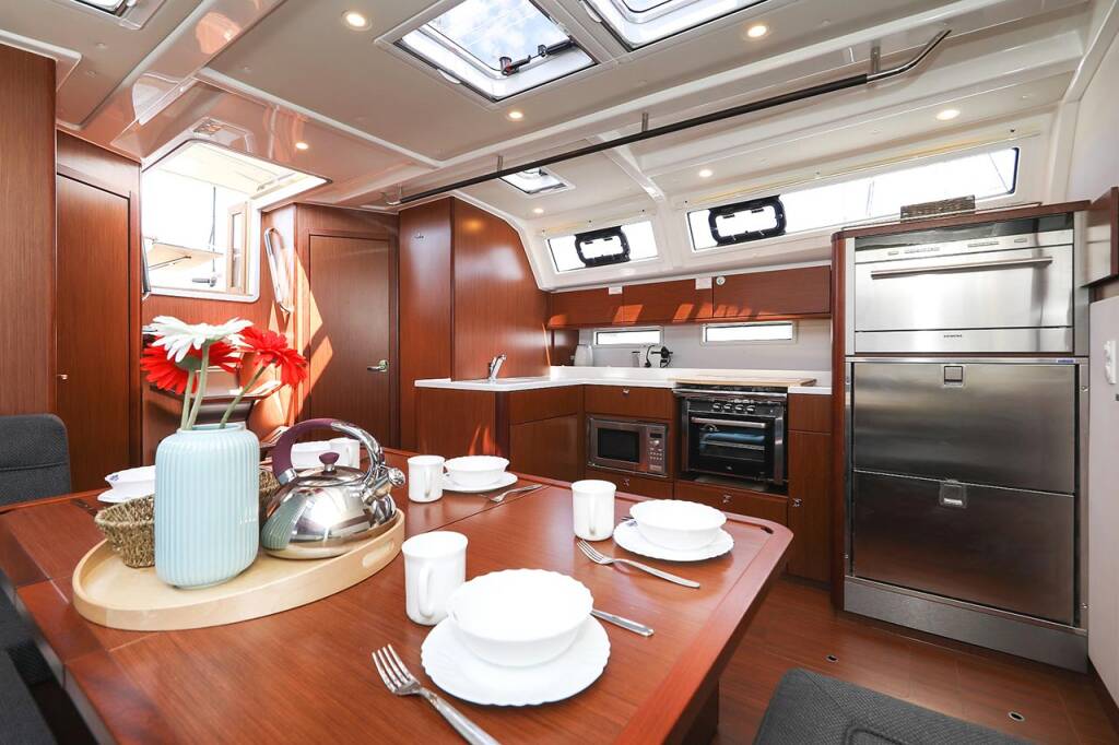 Sailing yacht Bavaria Cruiser 46 Style Sunshine, built in 2020 is anchored in the Trogir, Marina Trogir (ex.SCT), Split region, Croatia. It has 4 cabins, can accommodate 8 + 1 people and has 3 toilets.