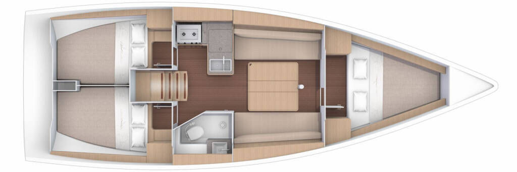 Sailing yacht Dufour 360 GL Vanila, built in 2019 is anchored in the Marina Losinj, Mali Losinj, Kvarner, Croatia. It has 3 cabins, can accommodate 6 + 2 people and has 1 toilets.
