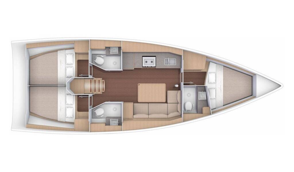 Sailing yacht Dufour 390 GL Artemis, built in 2020 is anchored in the Rhodes New Marina, Dodecanese, Greece. It has 3 cabins, can accommodate 6 + 2 people and has 3 toilets.