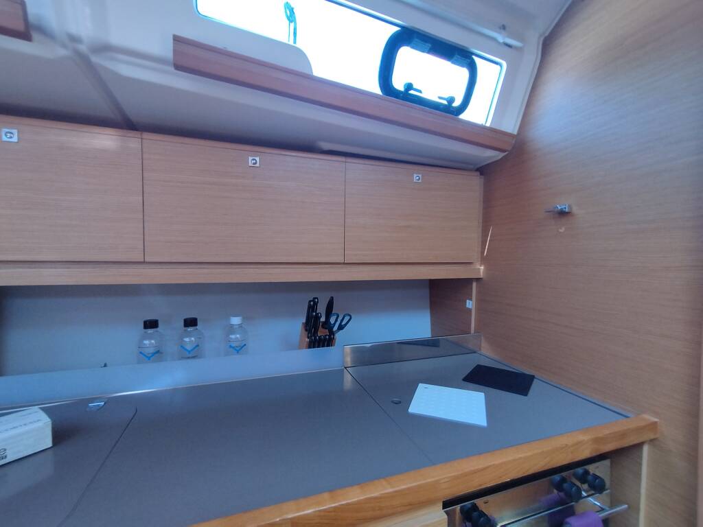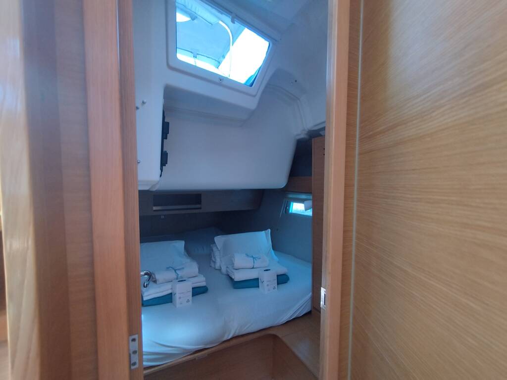 Sailing yacht Dufour 390 Pixie, built in 2019 is anchored in the Marina di Portisco, Sardinia, Italy. It has 3 cabins, can accommodate 6 people and has 2 toilets.