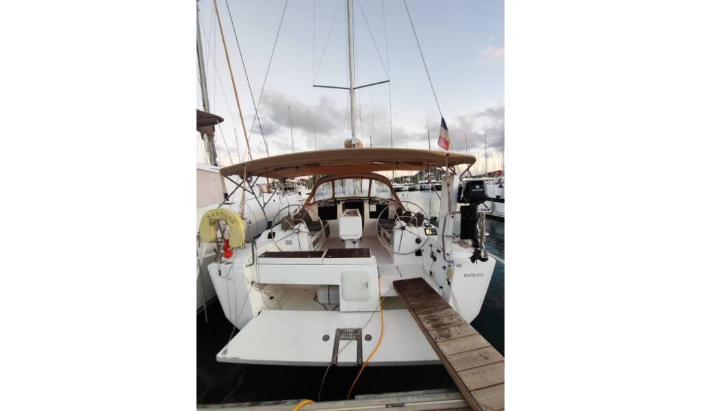 Sailing yacht Dufour 412 GL BARBUDA, built in 2018 is anchored in the Martinique, Le Marin, Martinique, Caribbean. It has 3 cabins, can accommodate 6 + 2 people and has 2 toilets.