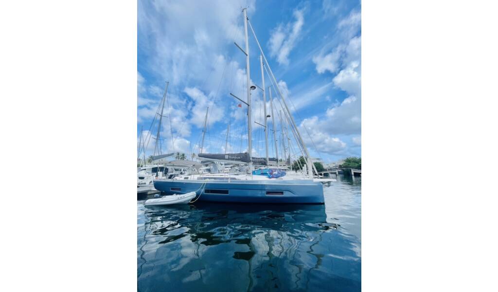 Sailing yacht Dufour 470 Knot Online, built in 2022 is anchored in the BVI, Tortola, Nanny Cay Marina, British Virgin Islands, British Virgin Islands. It has 3 cabins, can accommodate 6 people and has 2 toilets.