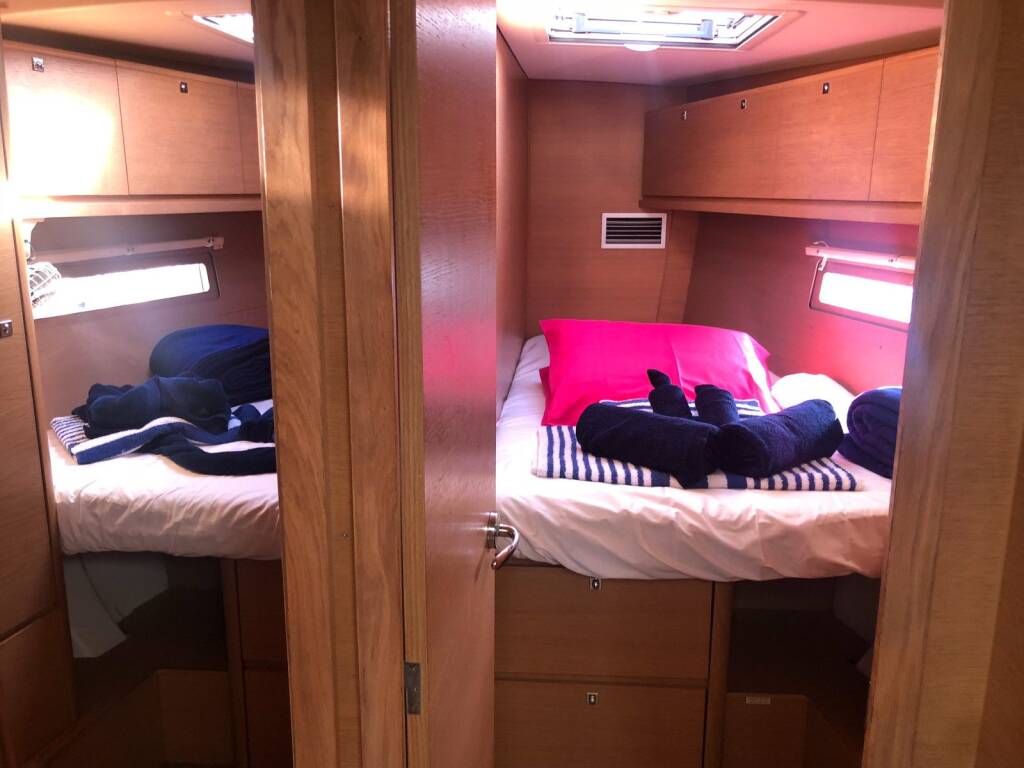 a hostess/cook is on board, 1 double cabin will be required for him/her. If both a skipper and a hostess/cook are on board, 1 double cabin and 1 forepeak cabin will be required for them. Exceptions exists for specific layouts, Sales Agents will