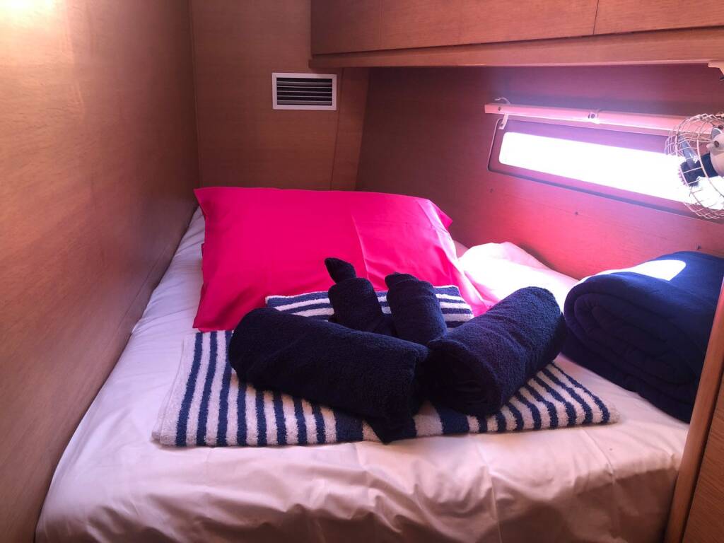 INCLUDED: starter pack – (1 gallon water or 4 bottles of 1.5L, 1 bottle of disinfectant, 1 small bottle of washing up liquid, 1 dish cloth, 1 sponge, garbage bags, 1 roll of paper towels, 1 box of matches, 1 roll of toilet paper in each head) // final cleaning // 1 set of bed sheets / cabin & 1 set of towels / pax, dinghy, outboard engine & initial supply of fuel, gas and water tanks // DYC assistance guarantee // 1st & last night in the marina // NOT INCLUDED: refuelling, gas & water consumption at end of charter, taxes if any, handling fees & additional equipment deposit.
