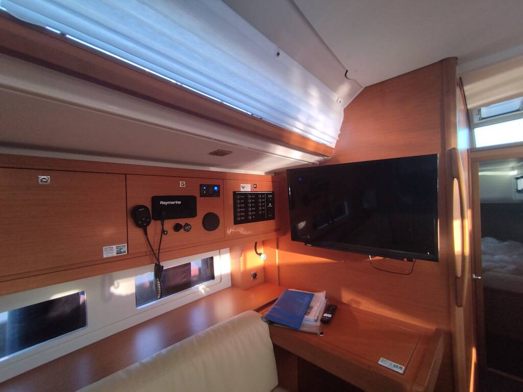 Sailing yacht Dufour 530 Rhamnus, built in 2023 is anchored in the Marina di Portisco, Sardinia, Italy. It has 4 + 1 cabins, can accommodate 8 + 1 people and has 3 + 1 toilets.