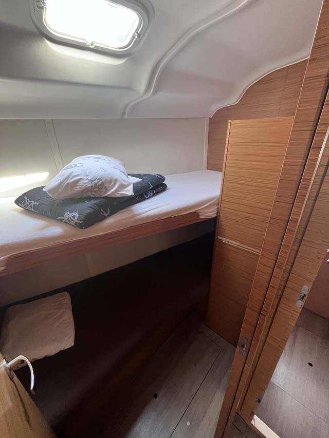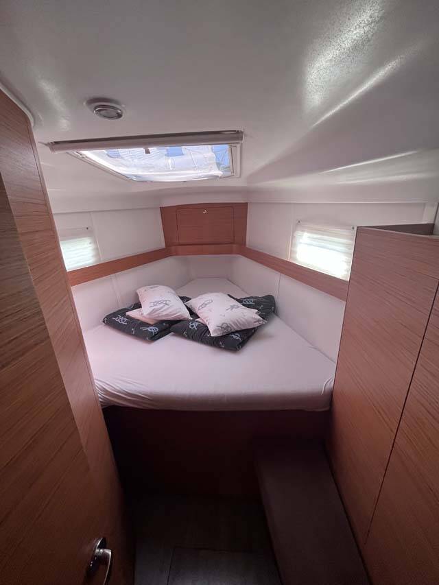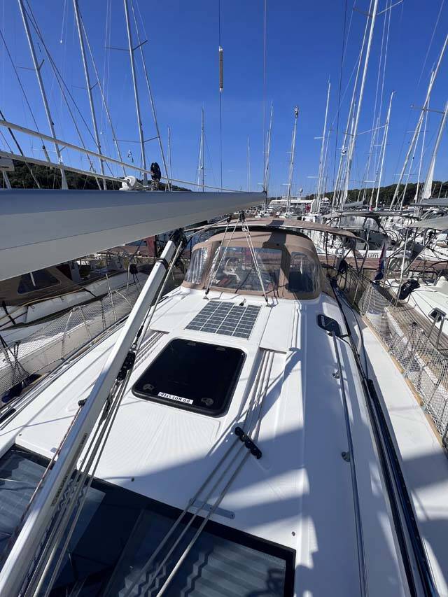 Sailing yacht Elan Impression 45 Knotty Buoy, built in 2019 is anchored in the Marina Tehnomont Veruda, Pula, Istra, Croatia. It has 4 cabins, can accommodate 8 + 1 people and has 2 toilets.