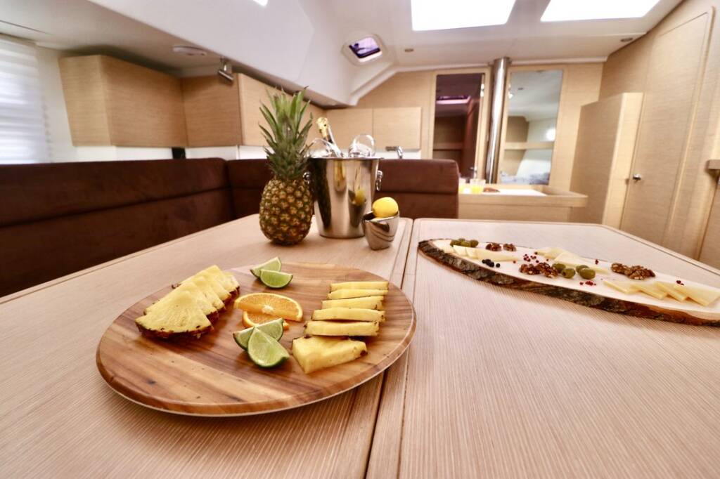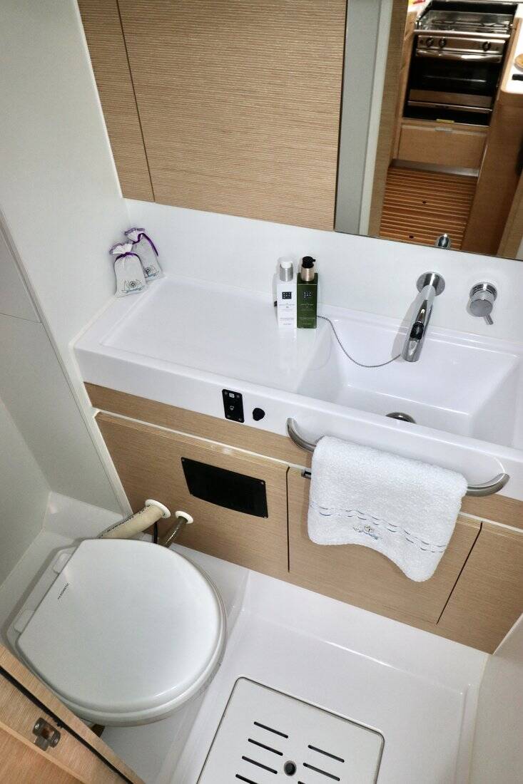 KEY EQUIPMENT : Bow thruster ; Heating - Webasto ; Bathing platform ; Cockpit fridge ; Electric toilet ; Outboard engine ; NESPRESSO coffee machine ; Wifi Internet