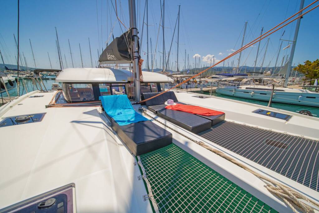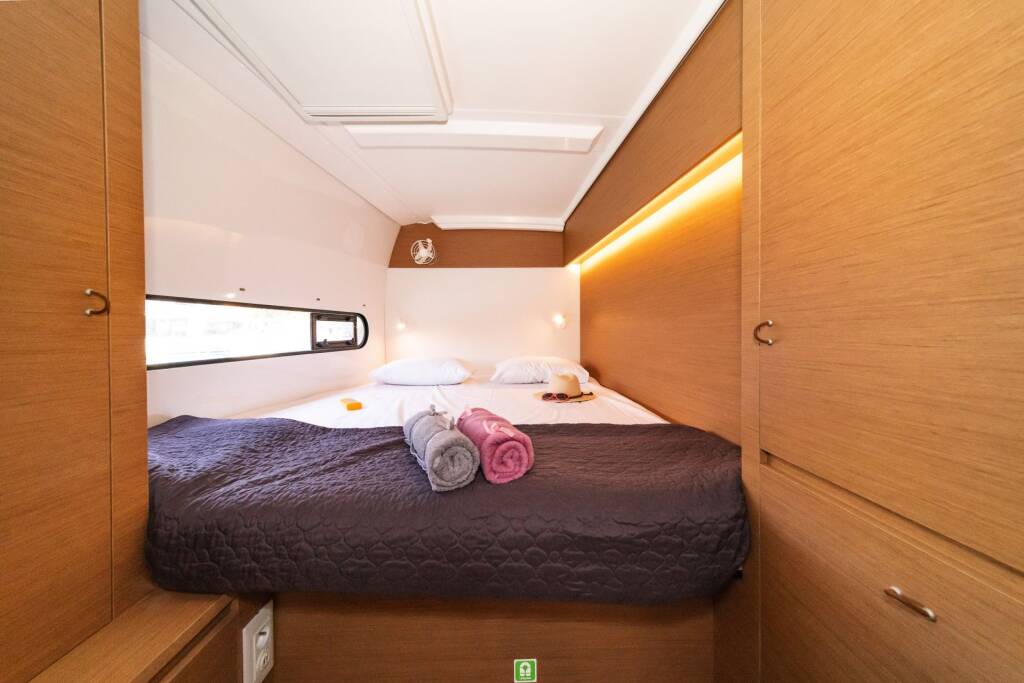 Catamaran Excess 11 Okiroi, built in 2023 is anchored in the Skiathos, Skiathos/Sporades, Volos, Greece. It has 4 + 2 cabins, can accommodate 8 + 2 people and has 2 toilets.