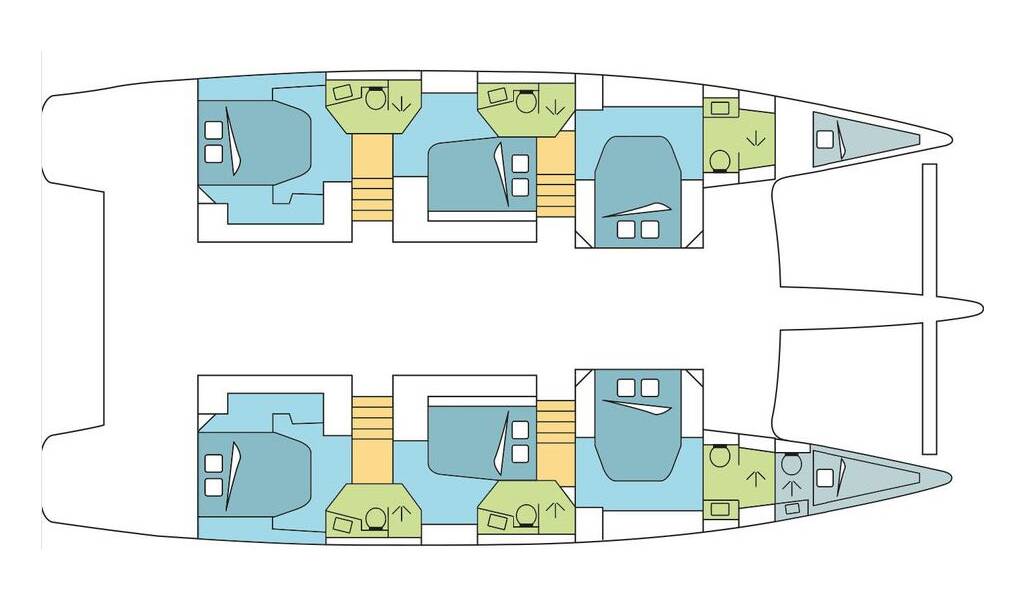 ● Accommodation in 6 private air-conditioned double cabins with ensuite bathroom