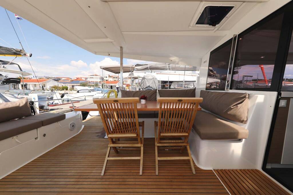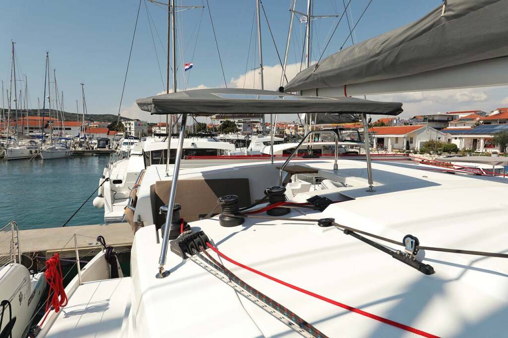 Catamaran Fountaine Pajot Lucia 40 Canopus, built in 2020 is anchored in the Marina Hramina, Murter, Šibenik region, Croatia. It has 4 cabins, can accommodate 8 + 2 people and has 4 toilets.