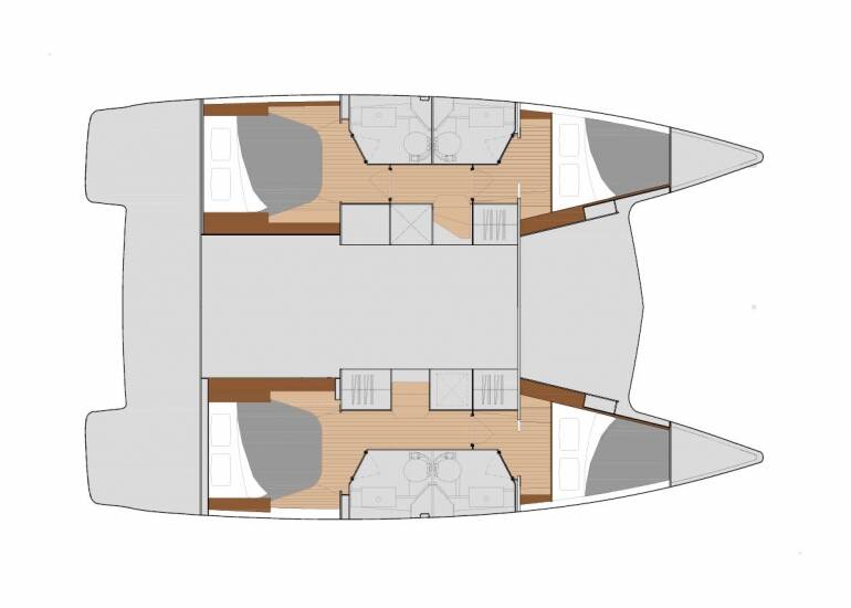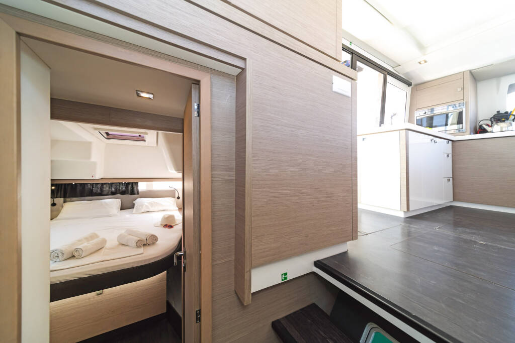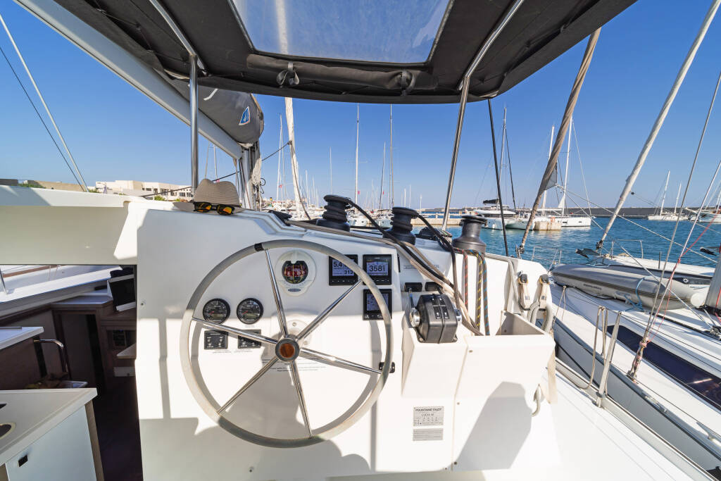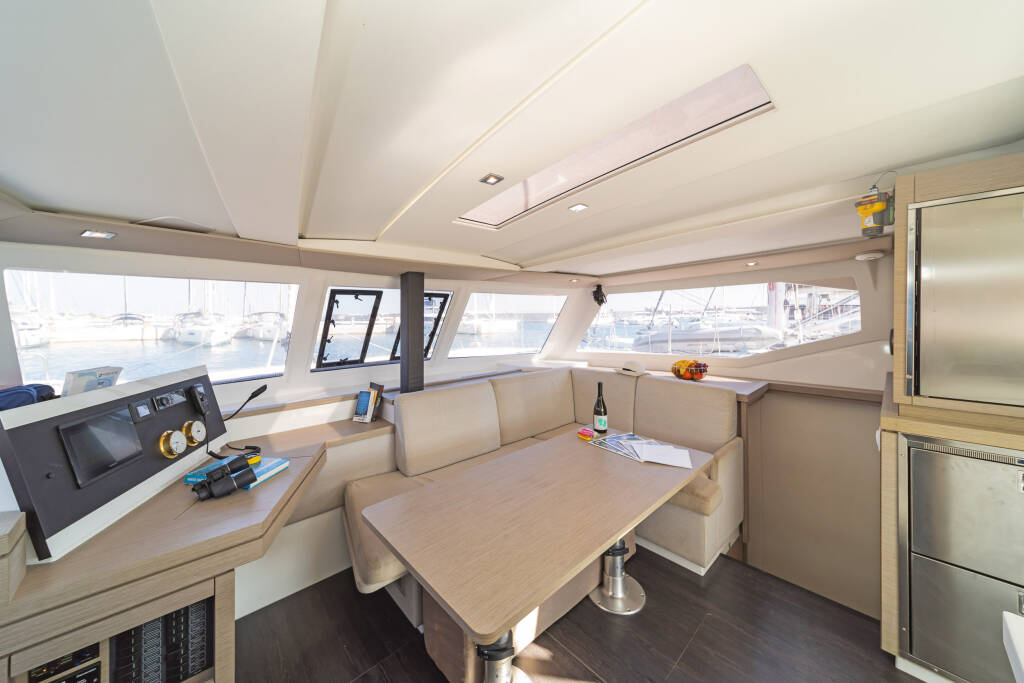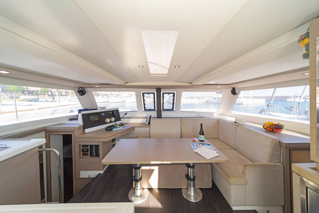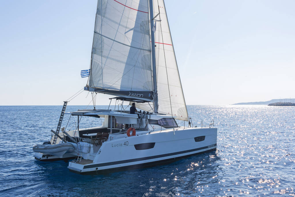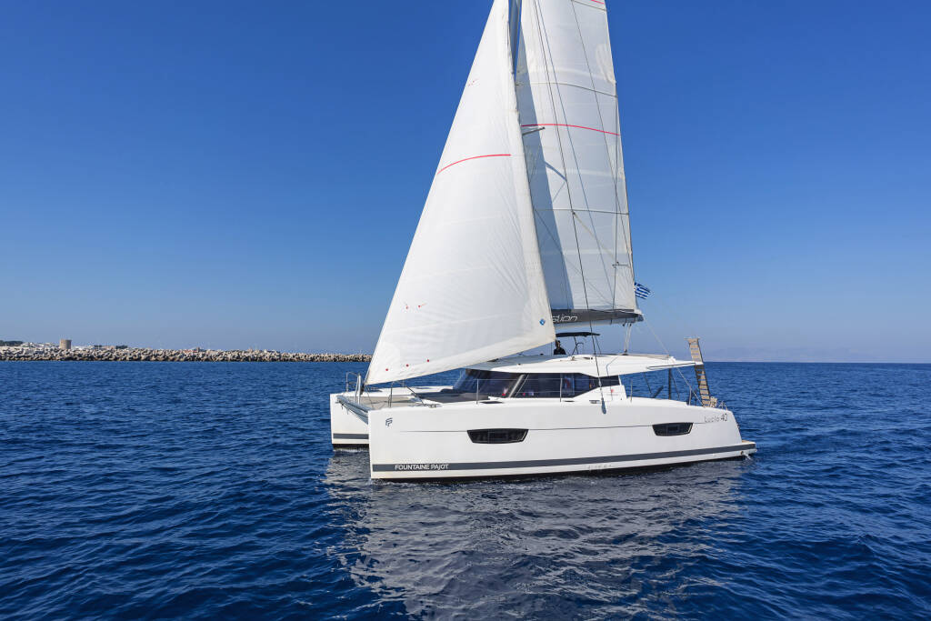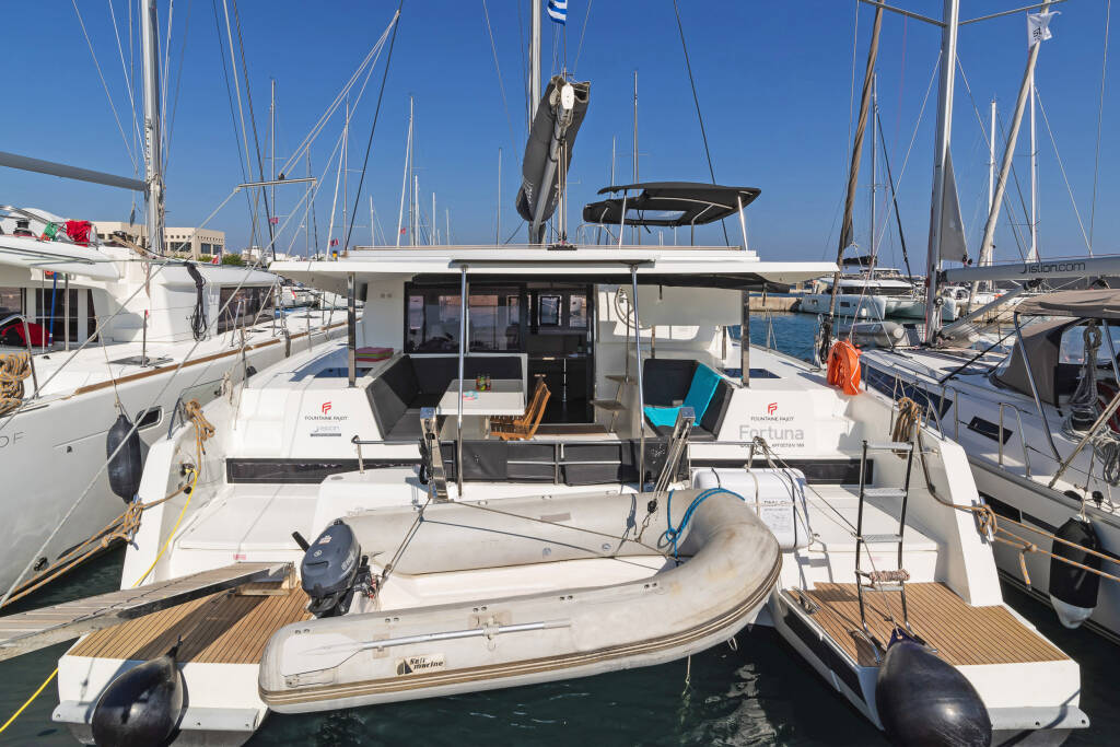Catamaran Fountaine Pajot Lucia 40 Fortuna, built in 2020 is anchored in the Rhodes New Marina, Dodecanese, Greece. It has 4 cabins, can accommodate 8 people and has 4 toilets.