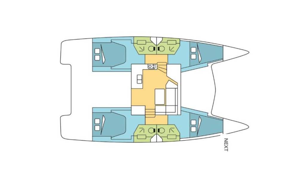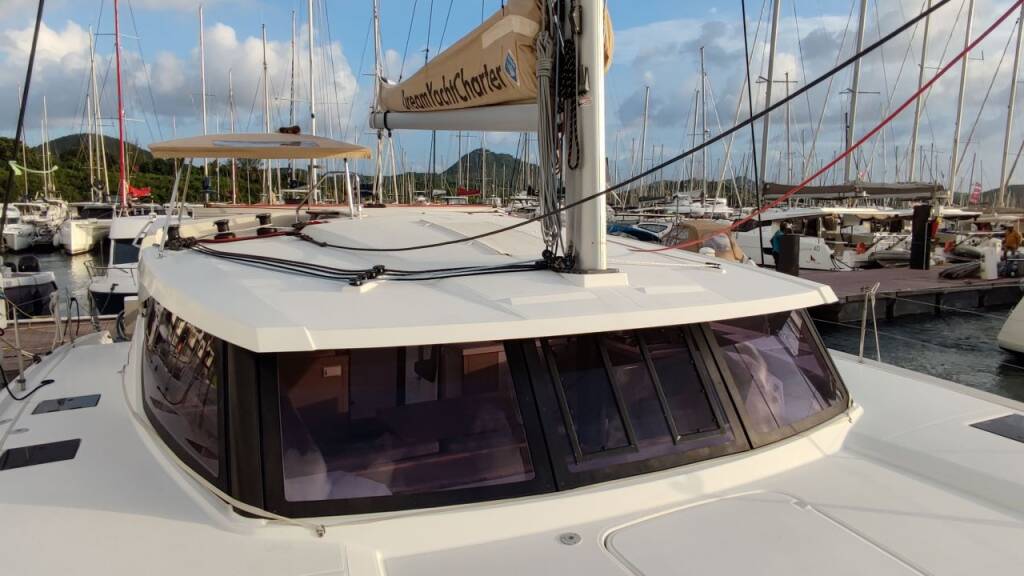 Catamaran Fountaine Pajot Lucia 40 HARFANG, built in 2020 is anchored in the Martinique, Le Marin, Martinique, Caribbean. It has 4 cabins, can accommodate 8 + 2 people and has 4 toilets.
