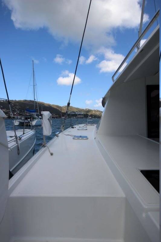 Catamaran Fountaine Pajot Saba 50 Apres Ski, built in 2021 is anchored in the St. Thomas, Frenchtown Marina, US- Virgin Islands, United States Virgin Islands. It has 5 cabins, can accommodate 10 people and has 5 toilets.