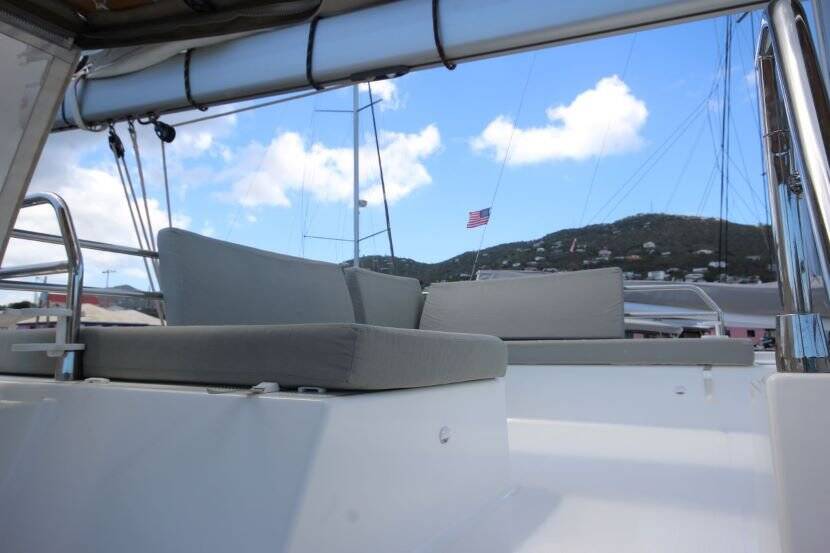Apres Ski is a lovely Fountaine Pajot Saba 50 fit for a party! She is spacious both inside and out, with three separate exterior seating areas to enjoy. She is equipped with five cabins, five heads, four queen berths, an owner’s suite, an additional quarter berth, and a day head in the starboard hull. Amenities like a generator, air conditioning, and water maker make living aboard a breeze.