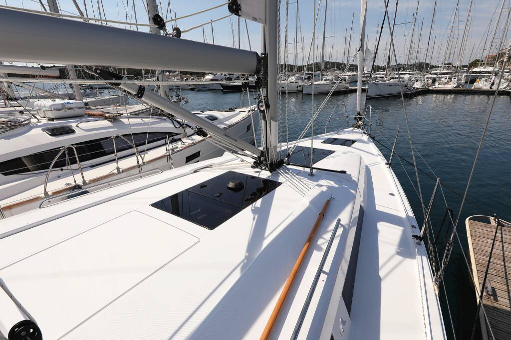Sailing yacht Hanse 388 Smiley, built in 2023 is anchored in the Marina Mandalina, Sibenik, Šibenik region, Croatia. It has 3 cabins, can accommodate 6 + 2 people and has 2 toilets.