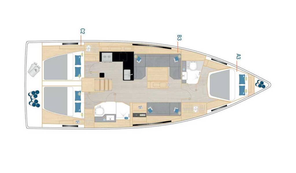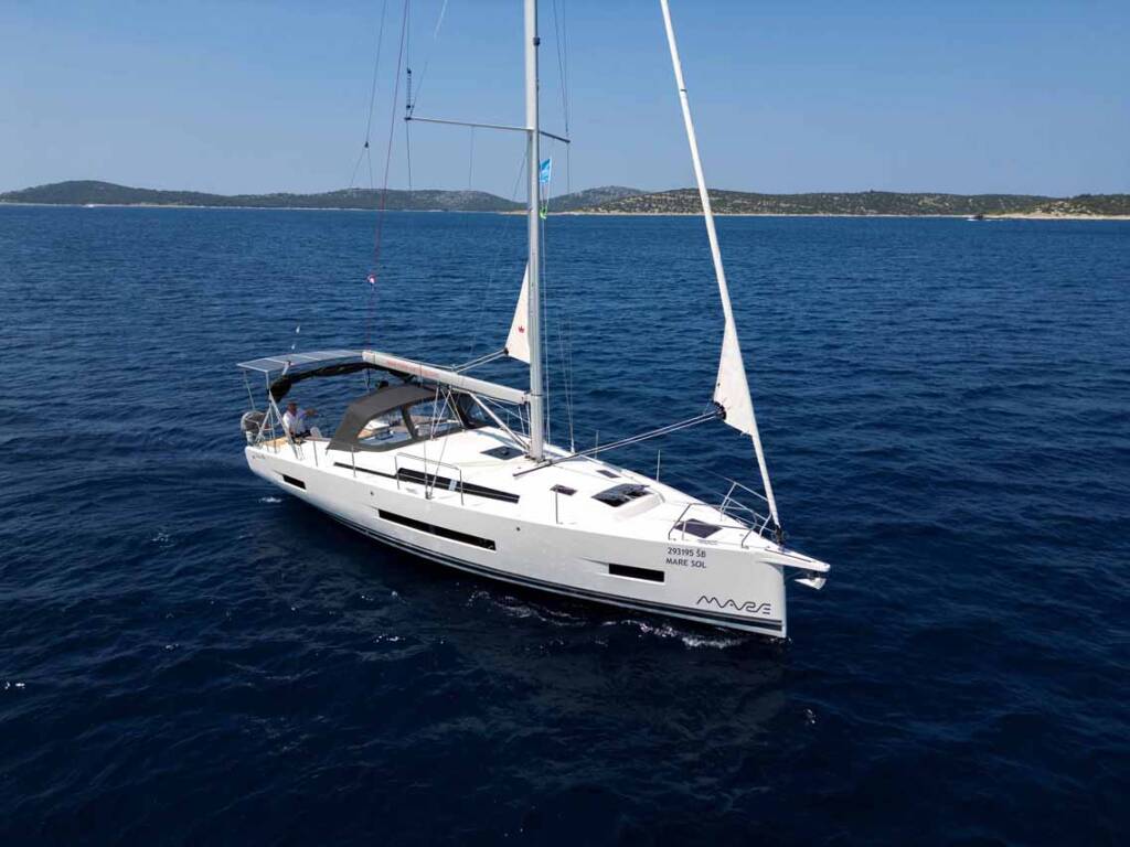 Sailing yacht Hanse 410 Mare Sol, built in 2025 is anchored in the Marina Mandalina, Sibenik, Šibenik region, Croatia. It has 3 cabins, can accommodate 6 + 2 people and has 2 toilets.