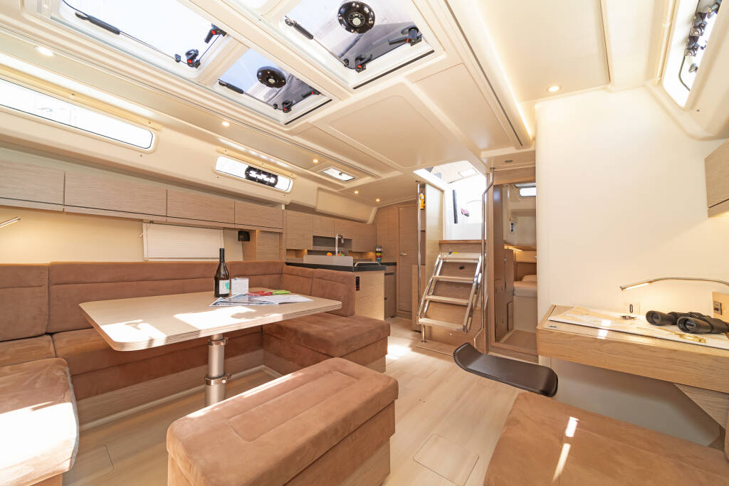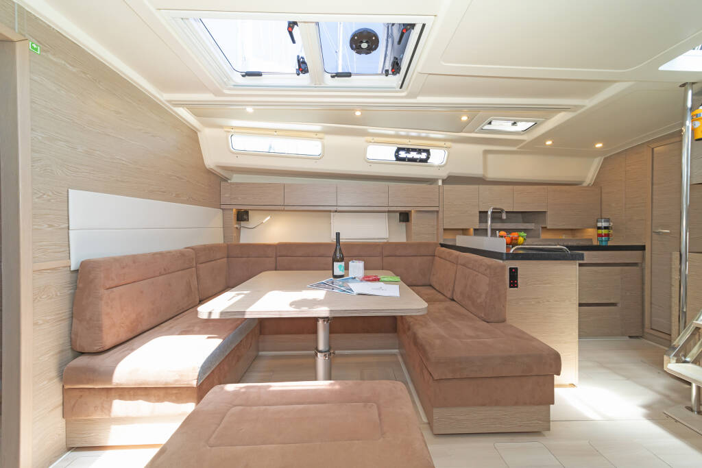 Sailing yacht Hanse 458 Triton, built in 2019 is anchored in the Rhodes New Marina, Dodecanese, Greece. It has 4 cabins, can accommodate 8 + 2 people and has 2 toilets.