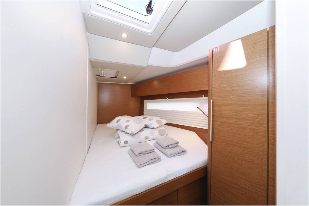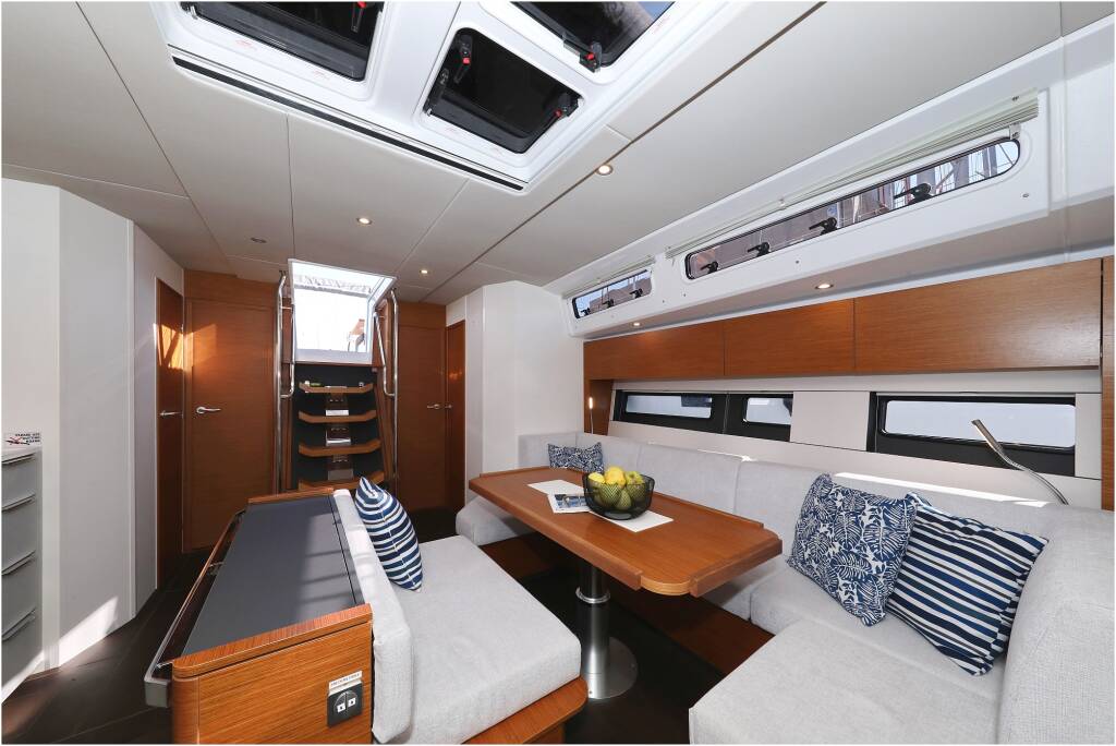 Sailing yacht Hanse 510 Hype, built in 2023 is anchored in the Marina Kornati, Biograd, Zadar region, Croatia. It has 5 + 1 cabins, can accommodate 10 + 2 + 1 people and has 3 + 1 toilets.