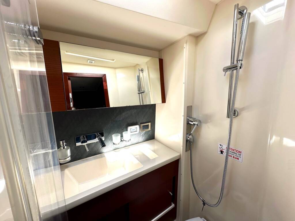Sailing yacht Hanse 548 Adele, built in 2022 is anchored in the Trogir, Yachtclub Seget (Marina Baotić), Split region, Croatia. It has 5 + 1 cabins, can accommodate 10 + 2 people and has 3 + 1 toilets.