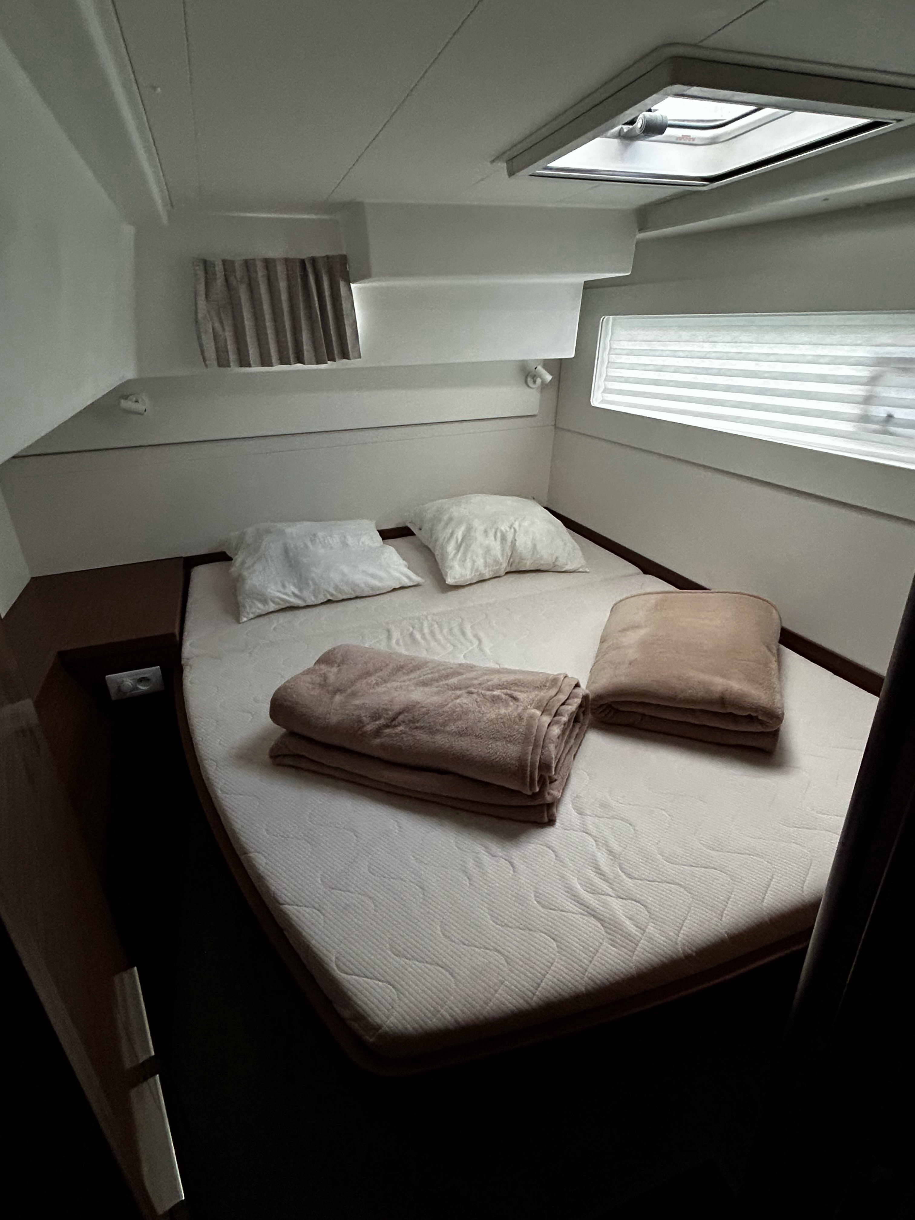 Catamaran Lagoon 40 Didoo, built in 2022 is anchored in the Corfu, Gouvia Marina, Ionian Islands, Greece. It has 4 + 2 cabins, can accommodate 8 + 2 people and has 4 toilets.