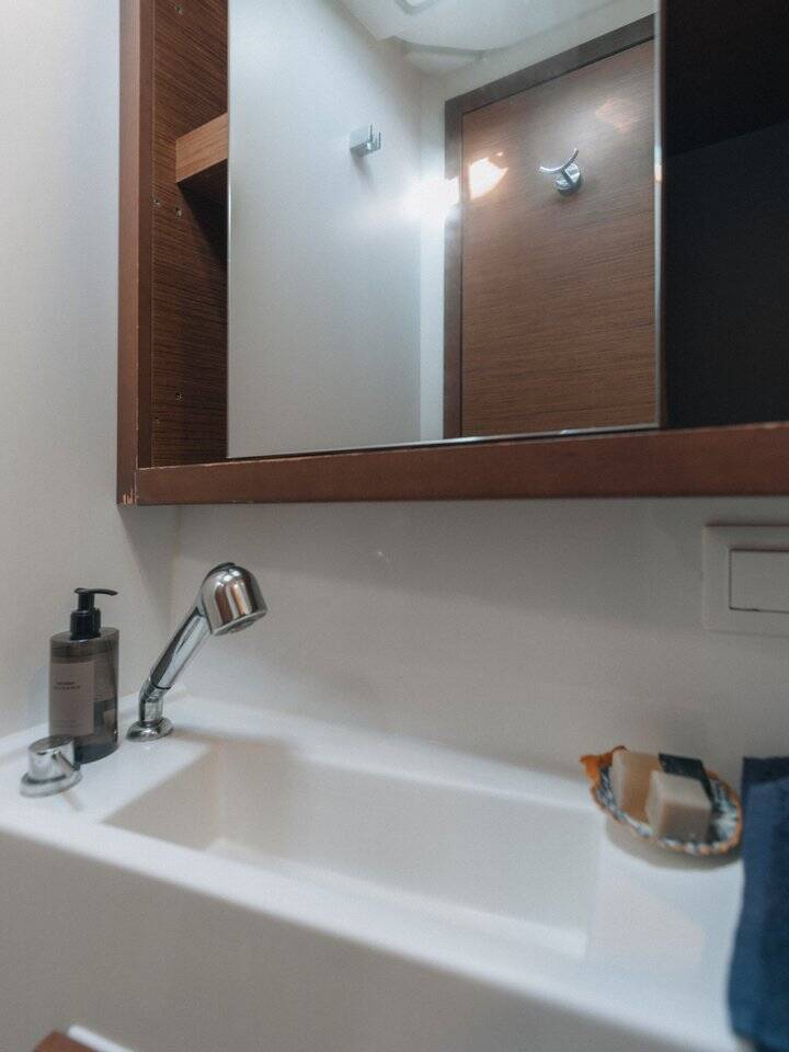 Catamaran Lagoon 40 L'Avventura, built in 2020 is anchored in the Athens, Alimos marina, Athens area/Saronic/Peloponese, Greece. It has 4 + 2 cabins, can accommodate 8 + 2 + 2 people and has 4 + 1 toilets.