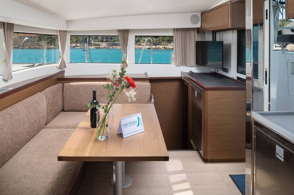 - Includes: SUP, end cleaning, bed linen (1 set/person: pillow, blanket, sheets, duvet cover) + medium towel (50x100cm) and a large towel (70x140cm), 2 x gas bottles for the kitchen, basic kitchen package (2 dish towels, dish soap) and a bathroom package (hand soap, 1 roll of toilet paper per toilet), FREE WIFI, dinghy with outboard engine 9 HP + 5L fuel for the outboard engine, one snorkelling set, check-in and out services, diver inspection during standard check-out time - Payable at the base