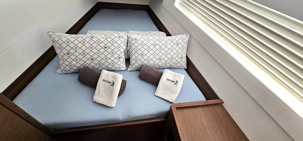 - Includes: Early check-in, SUP, end cleaning, bed linen (1 set/person: pillow, blanket, sheets, duvet cover) + medium towel (50x100cm) and a large towel (70x140cm), 2 x gas bottles for the kitchen, basic kitchen package (2 dish towels, dish soap) and a bathroom package (hand soap, 1 roll of toilet paper per toilet), FREE WIFI, dinghy with outboard engine 9 HP + 5L fuel for the outboard engine, one snorkelling set, check-in and out services, diver inspection during standard check-out time - Payable at the base