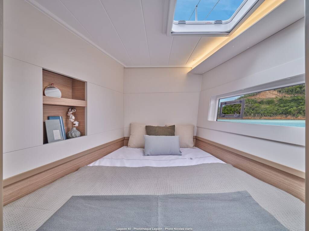 Catamaran Lagoon 40 Pussycat, built in 2025 is anchored in the Trogir, Yachtclub Seget (Marina Baotić), Split region, Croatia. It has 4 + 2 cabins, can accommodate 8 + 2 + 2 people and has 4 toilets.