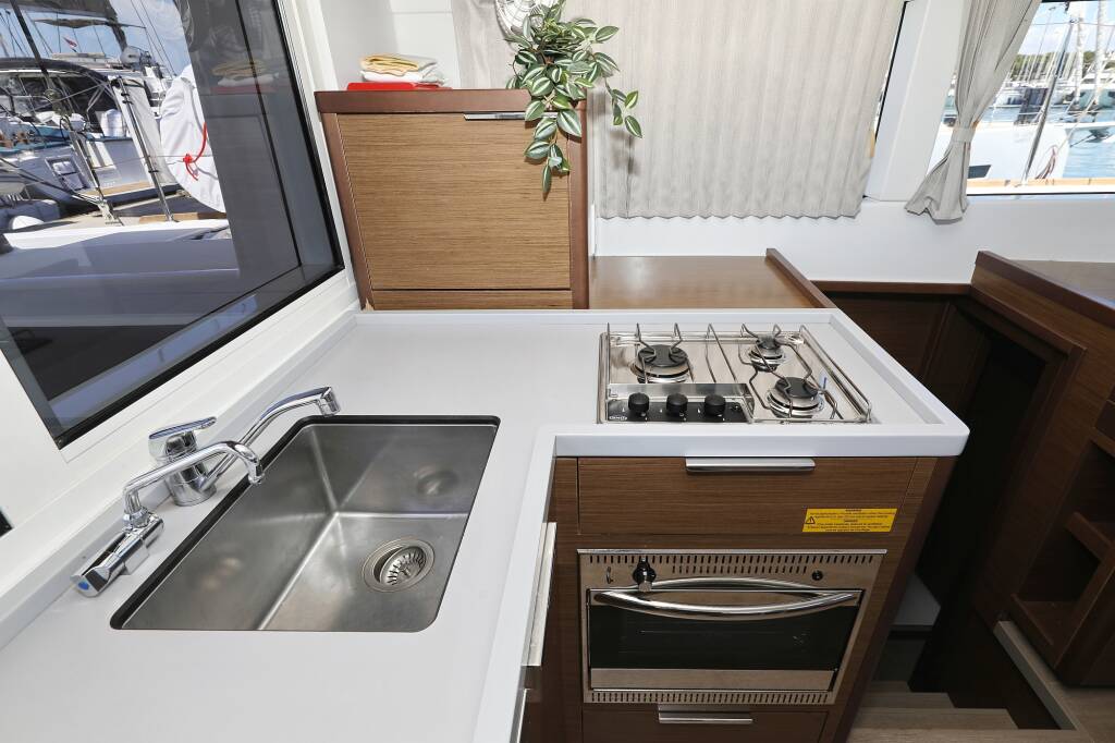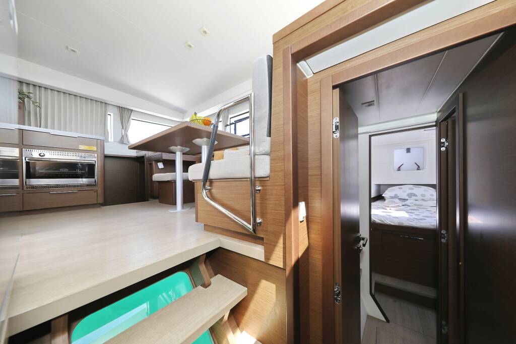 Catamaran Lagoon 40 Tortilla Flat, built in 2020 is anchored in the Marina Kornati, Biograd, Zadar region, Croatia. It has 4 + 2 cabins, can accommodate 8 + 2 + 2 people and has 4 toilets.